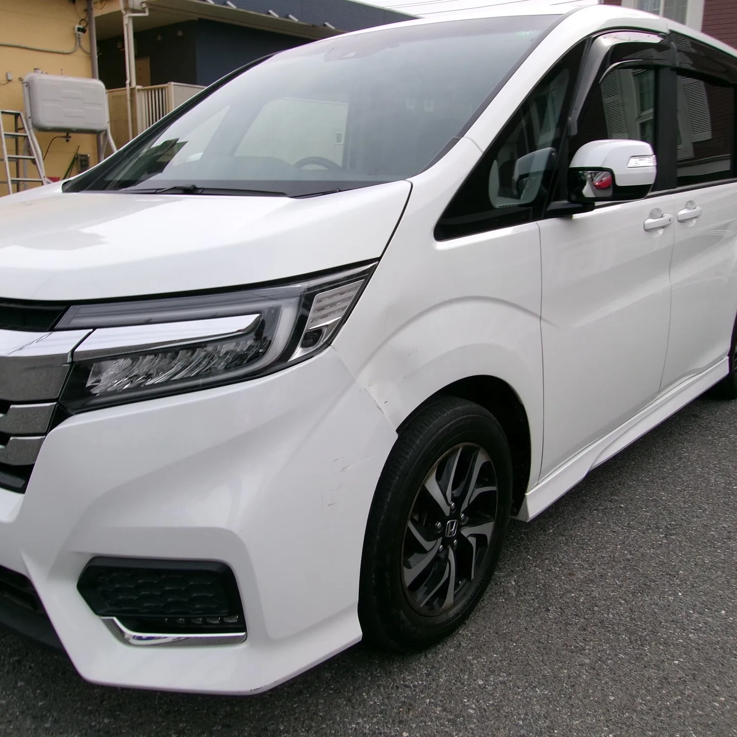 ホンダRPステップワゴン後期事故修理 ホンダRPステップワゴン後期事故修理フロントバンパー交換、フロントフェンダー交換、サイドガラス交換、各部塗装、純正新品部品使用当店はホンダディーラー指定板金塗装工場です。仕上がりに自信があり…
